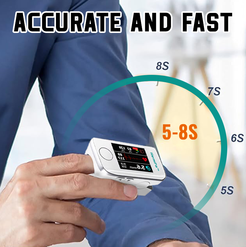 Completely painless—just place your index finger on the Remifa™ and, within 5-8 seconds, it will display your blood glucose levels, oxygen levels, and even your heart rate. Quick and easy!